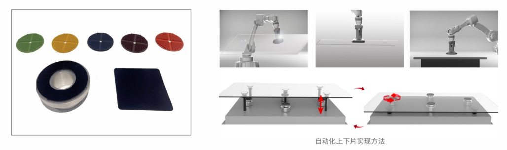 3.將仿生黏附墊背面通過雙面膠緊密貼附在夾具上表面。